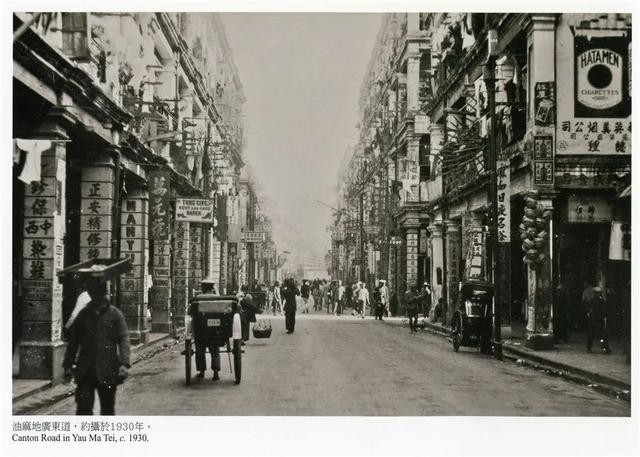约1930年的油麻地广东道(原载郑宝鸿編《香江九龙》一书),这一時期广东省委曾在香港开展工作。