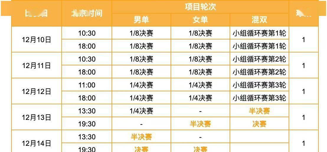 赛事赛程显示,混双八强赛和单打首轮可能被安排在同一天,中间或许只隔三小时。这样的安排对运动员的体能储备和状态调整提出了极高要求。