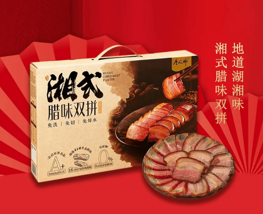 唐人神上新“湘式腊味双拼”。甄选香乡猪生态鲜肉,18小时内鲜肉腌制,甄选全程谷饲喂养,精心配比、均衡营养,历经近200天育肥窗口的香乡猪,其肉质细嫩,生态味美,肌间脂肪比例大于2.8%。自屠宰至腌制不超过18小时,保留更多猪肉原鲜。