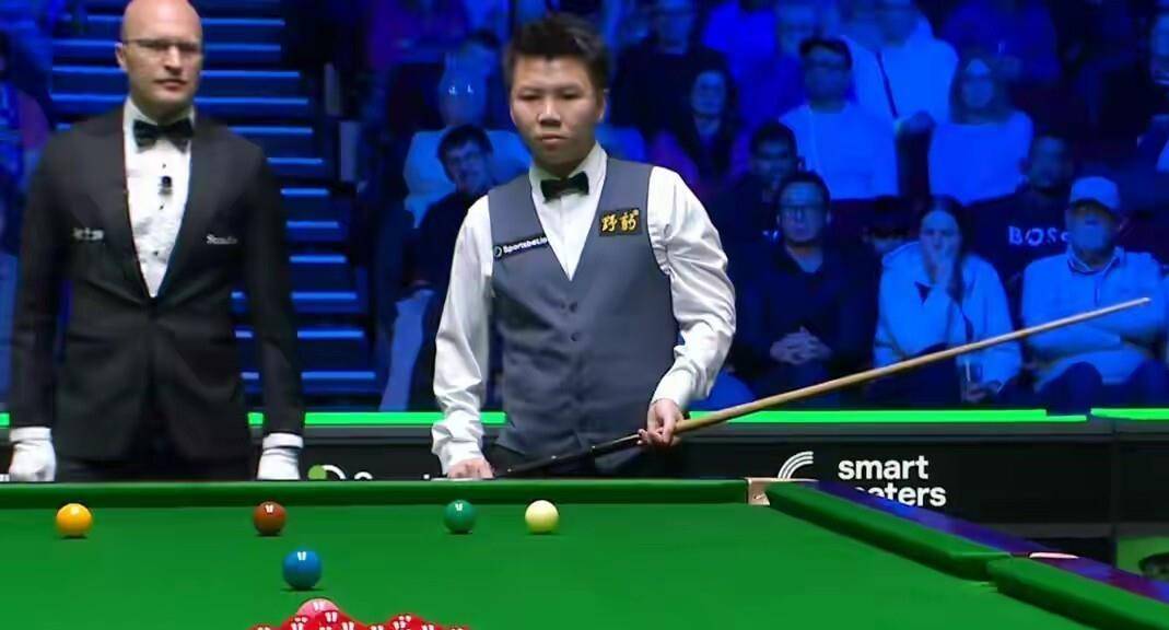 另一场同时进行的比赛中,张安达对阵大满贯得主肖恩·墨菲。 首局双方陷入缠斗,墨菲在最后时刻以58比50险胜。 第二局,墨菲状态爆发,他原本有机会冲击147满分,在成功打进第15颗黑球后,母球走位不理想,最终停在了一个尴尬的位置,冲击黄球失败,但他仍凭借这杆进攻打出单杆120分,再下一城。 第三局,墨菲乘胜追击,打出单杆88分,比分变为3比0。