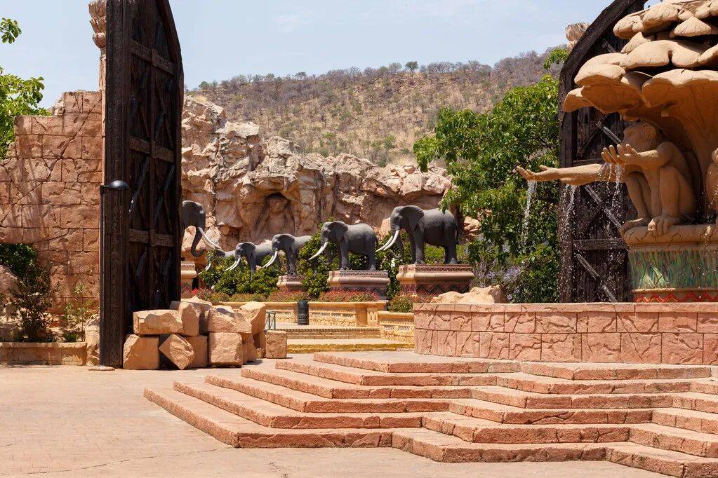 传说中,这座城是某个非洲部落古老的王城,根据祖鲁族传说中描绘的天堂模样重建。踏入其中,会看到高耸的棕榈树、奔腾的人工河流、栩栩如生的非洲象雕塑,以及每整点会爆发一次的地震桥,仿佛真的穿越到了古老的非洲神话世界。