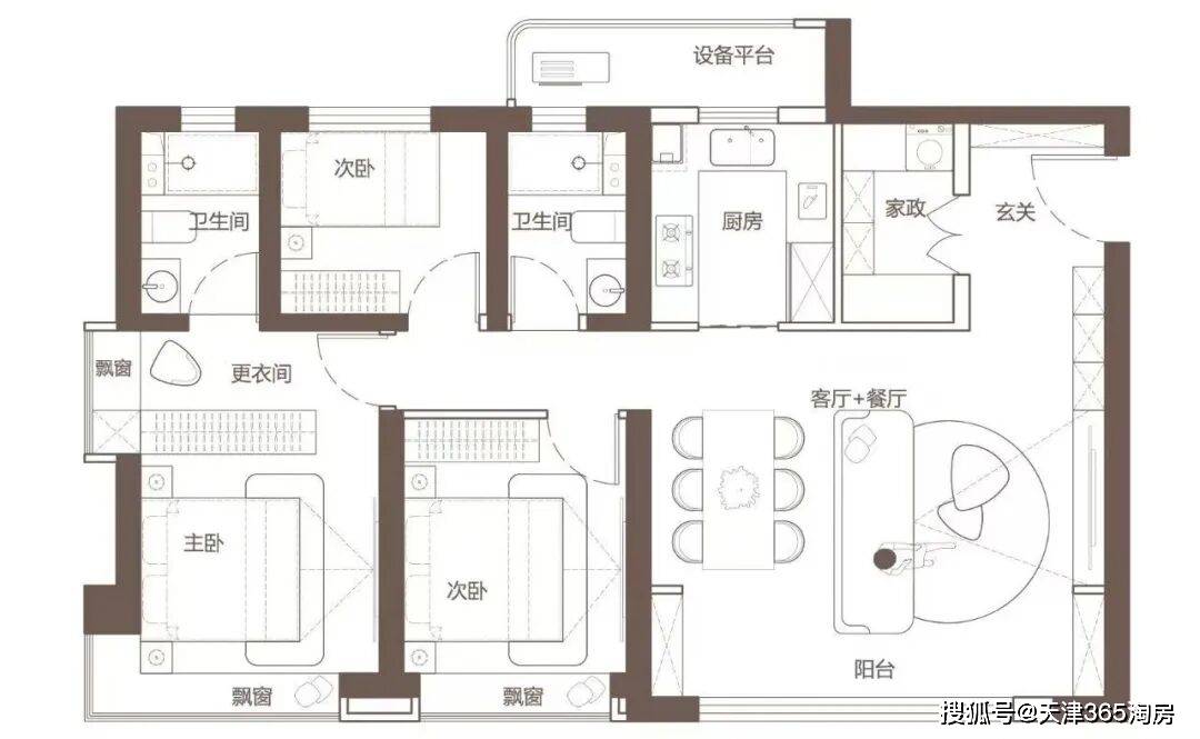河北区中铁建西派国印三期,94㎡三室产品单价2.2万/㎡,总价210万左右。