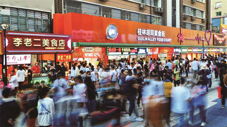 桂林胡同内,各式小吃琳琅满目,令人垂涎欲滴;老字号餐馆里,锅包肉外酥里嫩,酸甜汁儿裹着焦香;铜锅涮肉的炭火正旺,新鲜的羊肉卷在清汤里一涮即熟;铁锅炖的锅里咕嘟作响,排骨、豆角、玉米与土豆在汤汁里交融。