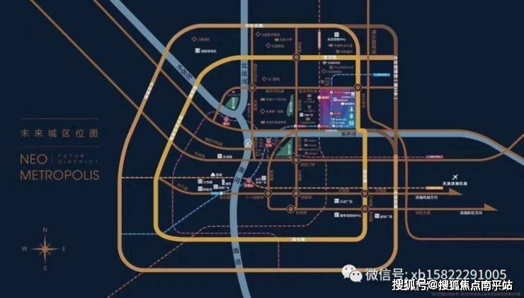 地段上,项目虽然行政区划属于北辰区,但地理位置上与河北区仅一路之隔。同时,政府大力发展基础建设投资,设立双地铁四站,增加人口基数,2条已建成的地铁线个站点,项目各地块到最近的地铁站都在500米以内,是真正的地铁上盖的市区大盘项目。未来城位于天津市北部,属于新快速路以内,处于东纵及志成快速路的交汇处,志成道快速路15分钟内快速通达天津之眼、西站、老城厢;东纵快速路直达万达、红星爱琴海商业区以及天津站;项目还紧邻京津唐高速,连同北京与滨海。