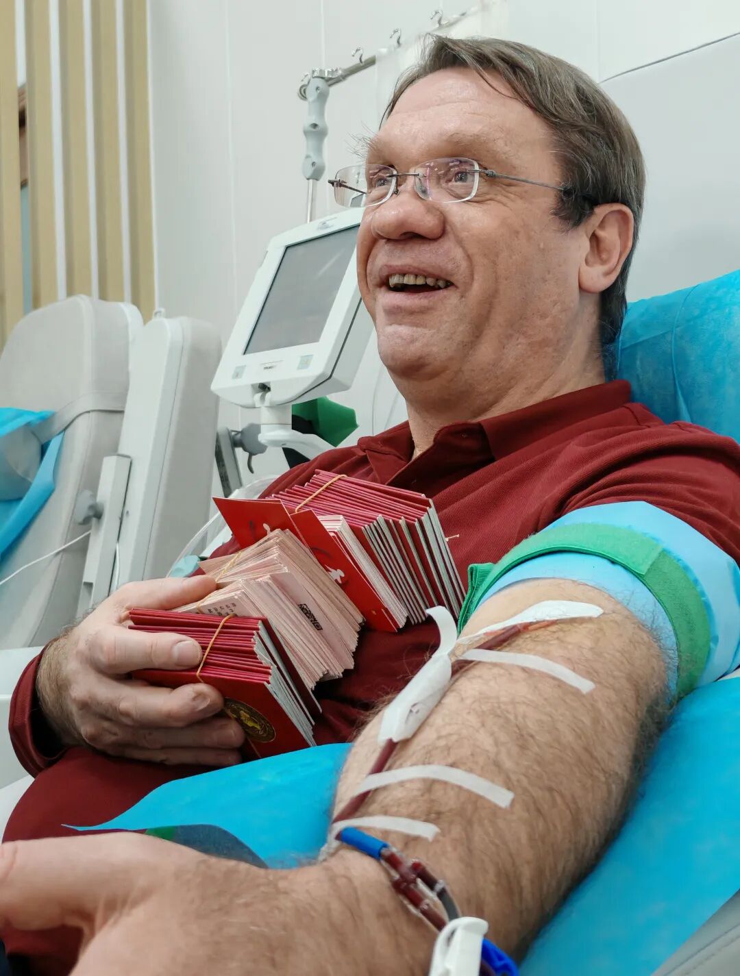 起初,老皮是在献血车上捐献全血,每半年献一次。后来,他了解到,如果捐献血小板,就可以每隔两周献一次。从那以后,只要没有特殊情况,他每月都会到天津市血液中心两次,每次献两个治疗单位的血小板,一年献满24次。