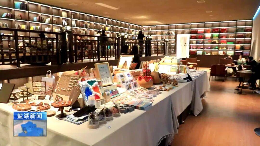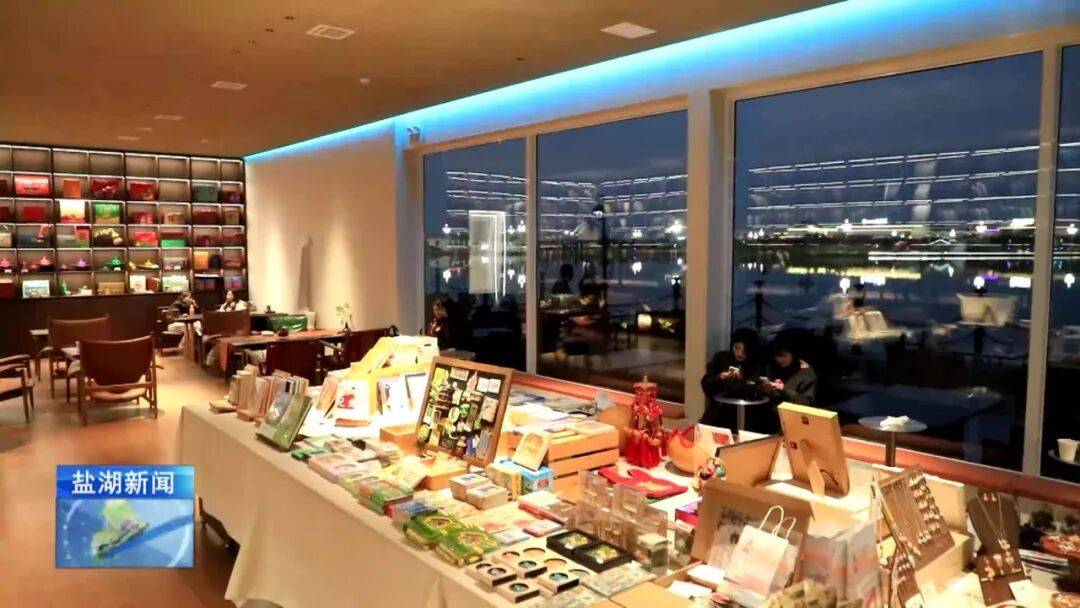 除了高颜值的打卡场景,丰富的功能体验更让这座空间充满温度。室内区域咖啡香与墨香交织,四人方桌适配好友小聚,临湖餐台让盐湖风光成为天然佐餐背景。文创区内,盐湖、关公主题冰箱贴、原创“运城”购物袋等特色产品琳琅满目,非遗手作精巧别致,成为游客定格盐湖记忆的热门选择。特别研发的盬盐咖啡极具地域特色,将运城盐池专属的“盬”字文化与现代咖啡艺术相融合,成为不少游客打卡必尝的标志性饮品。