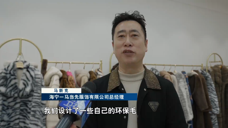 海宁一马当先服饰有限公司总经理 马新克:根据俄罗斯这几年的市场消费,我们设计了一些自己的环保毛,一些新的风格,新的产品给他们展示。