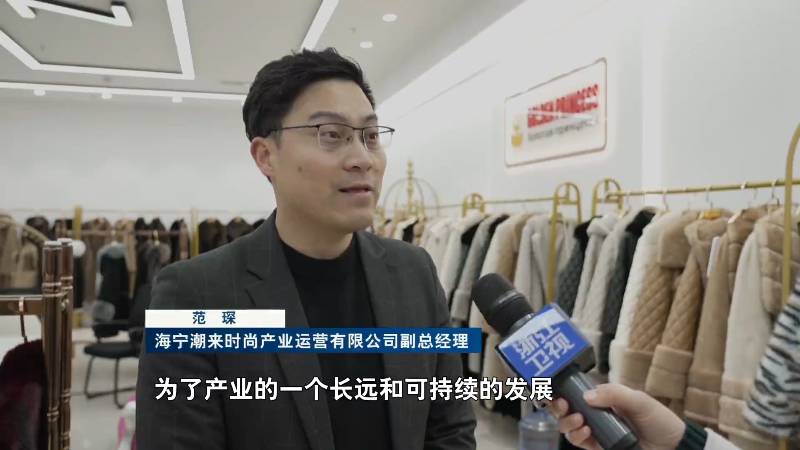 海宁潮来时尚产业运营有限公司副总经理 范 琛:基本上95%是从事内贸生产的,为了产业的一个长远和可持续的发展,接下去我们布局发展外贸板块,让企业能够“两条腿”走路。