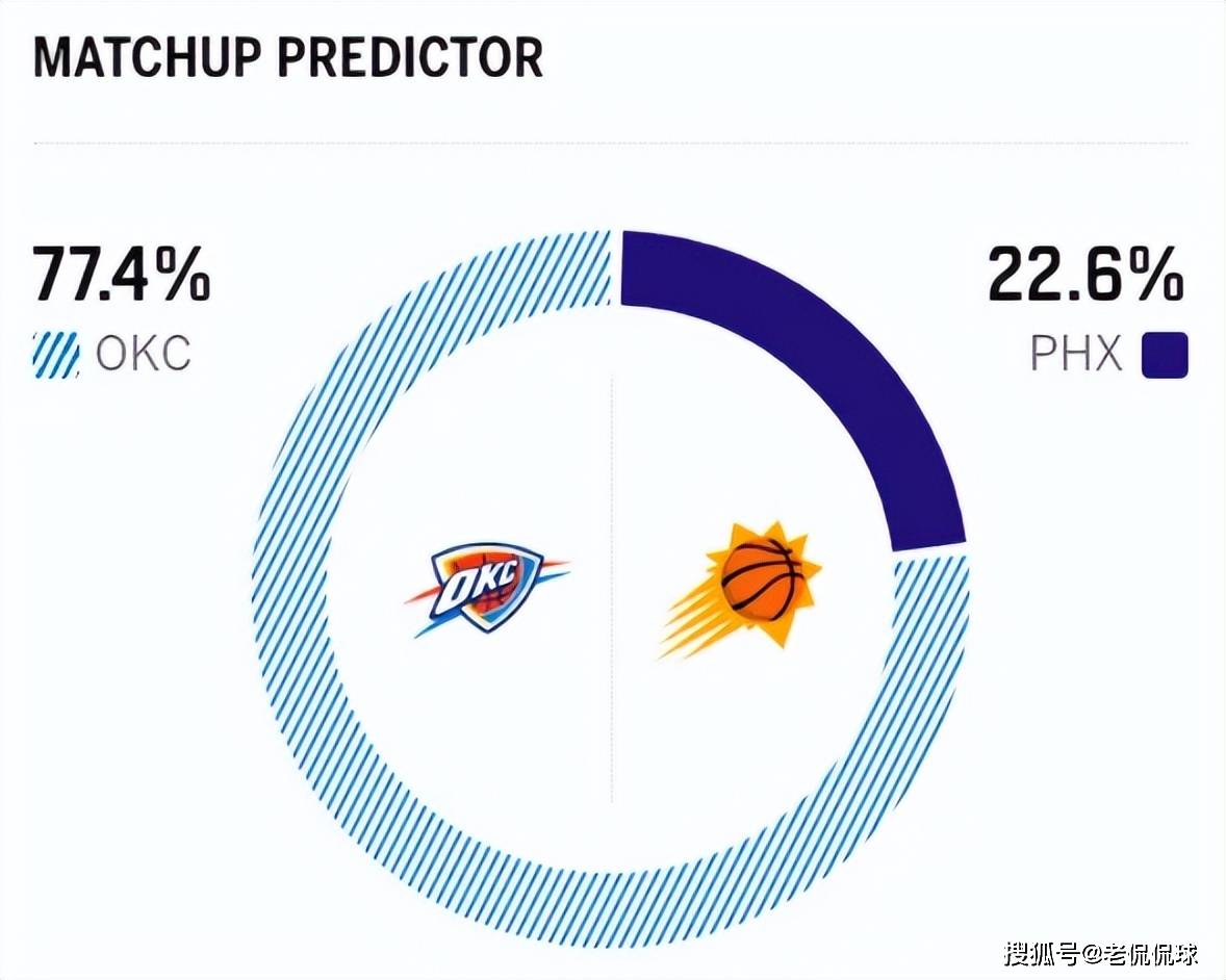 赛前,美媒ESPN对本场比赛进行了胜率预测,雷霆胜率高达77.4%, 太阳队胜率则意外达到了22.6%,算是近期对阵雷霆胜率较高的一支球队了。