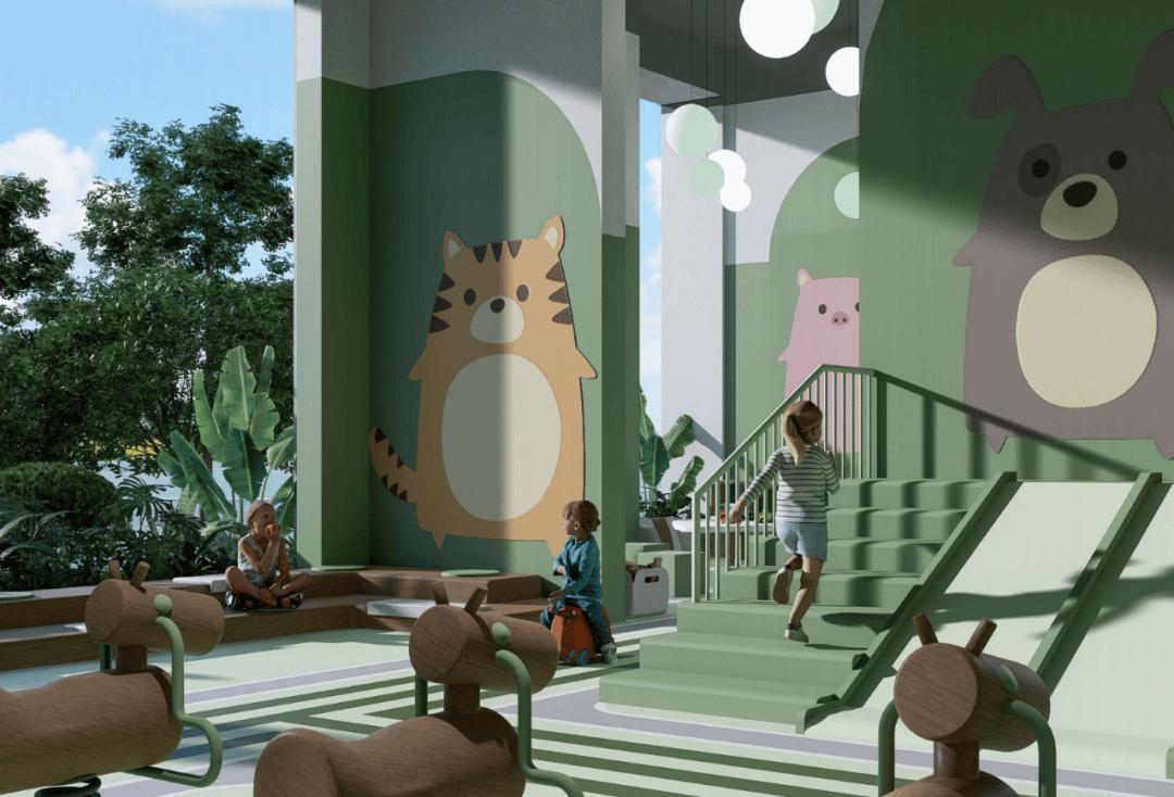 专为全龄儿童打造的活动空间,放置有滑梯、沙坑、秋千、攀爬区,这里是孩子们成长的快乐天地。