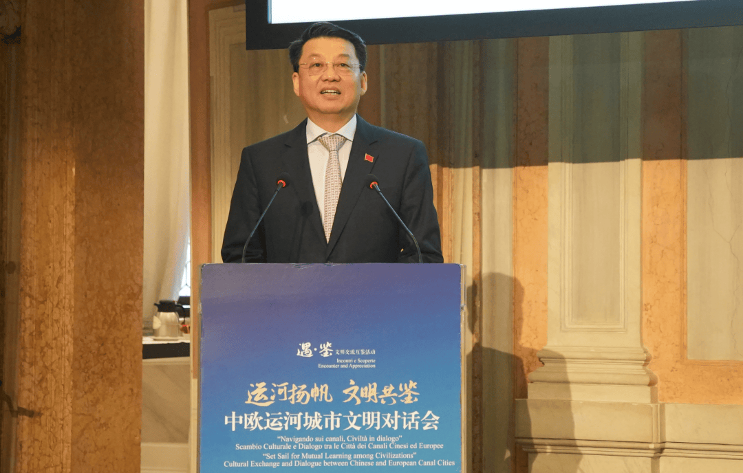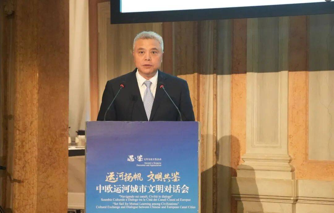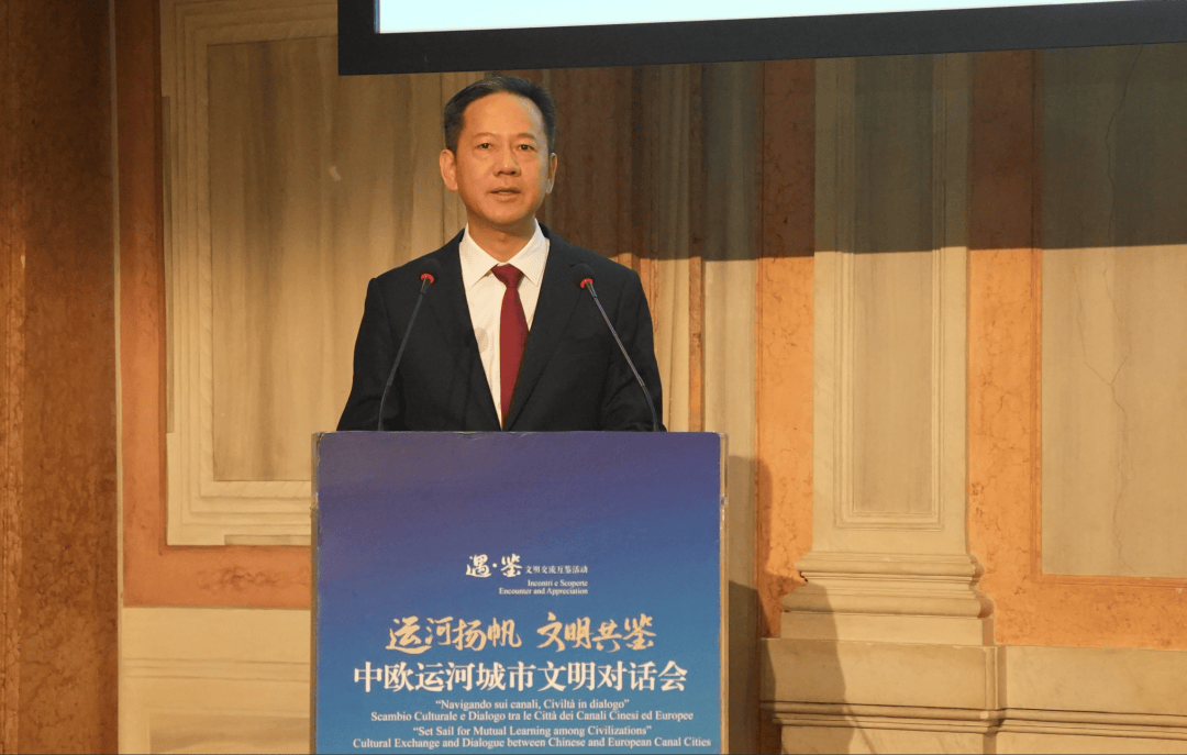 刘侃在致辞中表示,运河在人类历史上熠熠生辉,承载着深厚的历史和文化。中国和意大利都缘水而兴、因水而美,希望双方以中意建交55周年为新起点,以千年运河为纽带,持续深化各领域交流合作,努力绘就更加生动的文明互鉴图景。