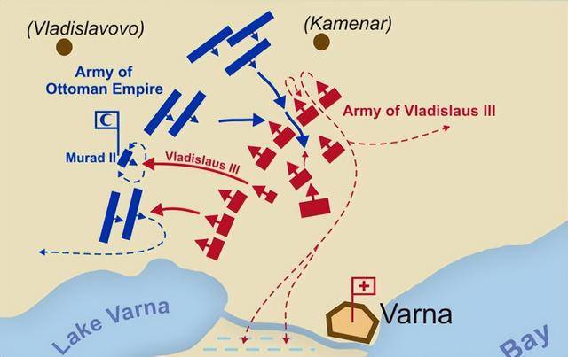 公元1444年11月10日,瓦尔纳之战以奥斯曼帝国的完胜告终。十字军伤亡高达15000-20000人,其中包括国王以及教廷特使切萨里尼。奥斯曼方面并非损失轻微,但远小于溃败后被大肆屠戮的失败方。