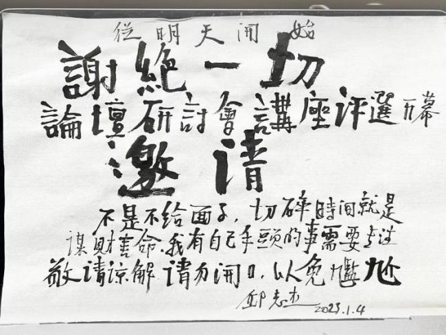 这三个身份可不是随便编的后缀,邱志杰的工作室贴着他的全年工作计划(见上图),每年他要做十几个展览,写十几本书,再做十几二十个项目……更不用说,去年他还拥有了新身份,天津美院的院长。从此,邱志杰开始了小红书治校,在小红书上回应学生提出的一切学校问题,为什么要狠抓论文质量,凌晨三点晒自己如何批改论文,向学生们汇报修好了澡堂食堂,道歉工地施工影响了学生们休息,等等等等。