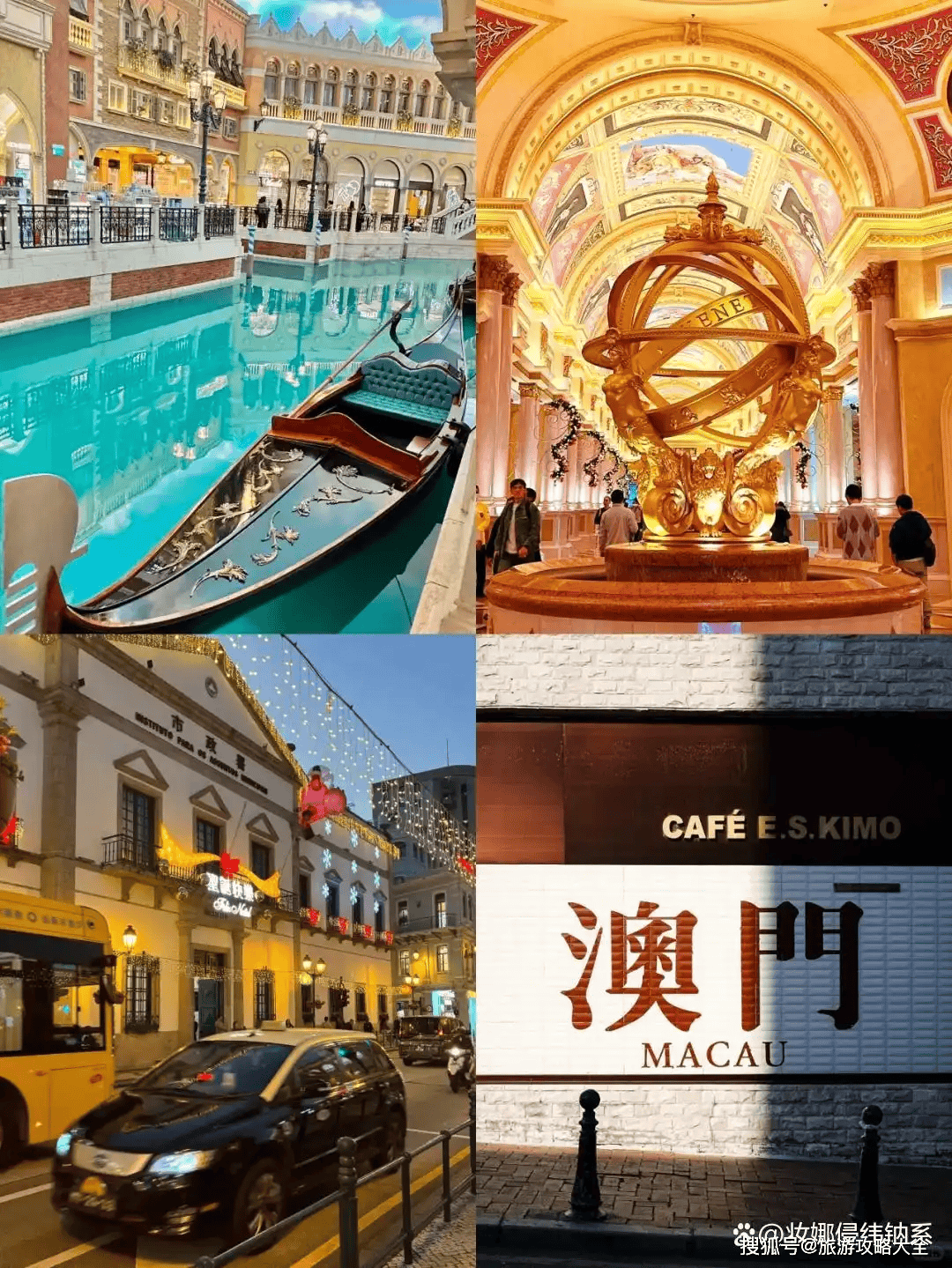乘船赴澳门,打卡大三巴牌坊、妈阁庙,傍晚入住威尼斯人酒店,房间直面运河夜景。
